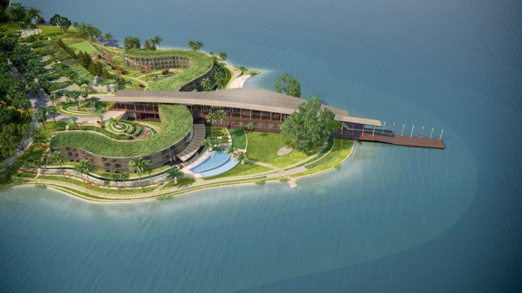 Designed to drive economic growth in the Western Province, this mixed-use development merges luxury hospitality with business functionality. The structure is divided into two distinct zones: a pier extending over the lake housing the reception, bar, and conference facilities .and a residential wing that follows the natural curve of the shoreline.